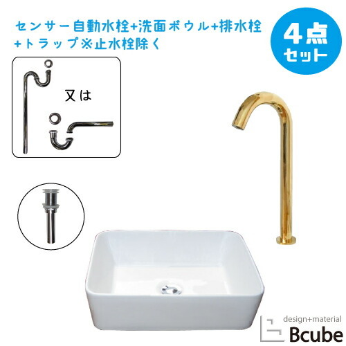 洗面台 おしゃれ 480 大きい 大きめ 陶器製 セット 置き型 センサー自動水栓 タッチレス 洗面ボウル 交換 リフォーム 4点 単水栓 手洗い器 幅48cm B-0402021HSset336
