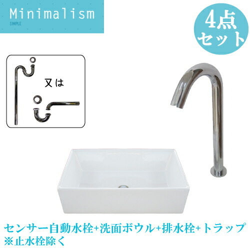 手洗い器 陶器 大きい 大きめ 洗面ボウル 4点 セット 洗面台 おしゃれ 置き型 センサー自動水栓 タッチレス 交換 リフォーム 単水栓 W600 D400 H160 B-0402035HSset419