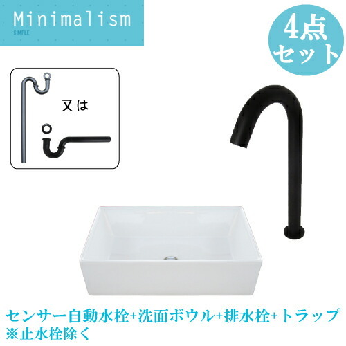 洗面台 手洗い器 4点 セット 陶器 大きい 大きめ 洗面ボウル おしゃれ 置き型 センサー自動水栓 タッチレス 交換 リフォーム 単水栓 W600 B-0402035HSset421