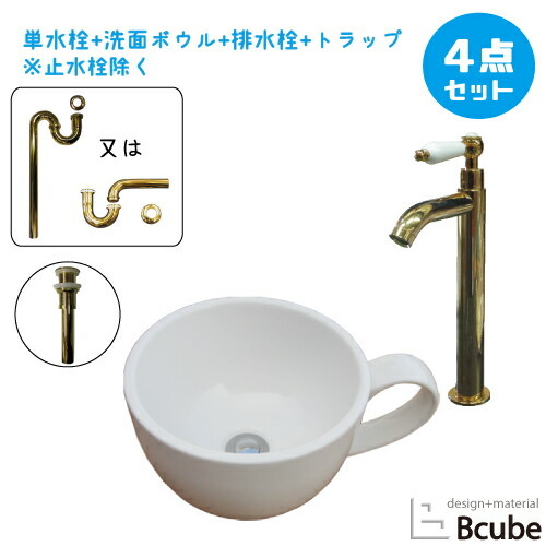 洗面ボウル コーヒーカップ おしゃれ セット 陶器製 小さい 小さめ 置き型 洗面台 コンパクト リフォーム 4点セット 単水栓 オンカウンター W310 B-0403132HJset117