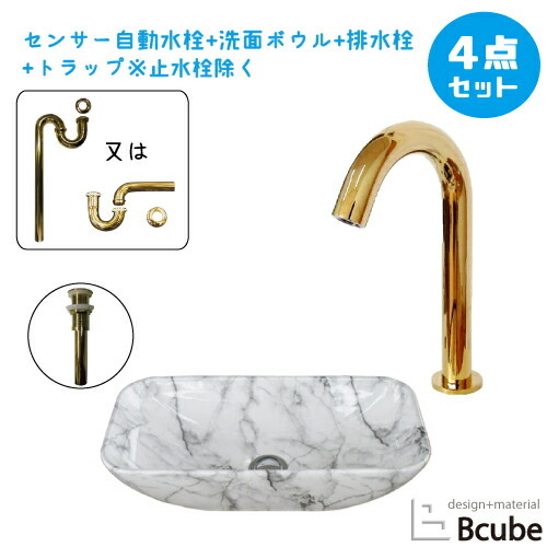 洗面台 おしゃれ 置き型 センサー自動水栓 タッチレス 陶器 460 大きい 大きめ 洗面ボウル 交換 リフォーム 4点 単水栓 幅46cm B-0403300HSset206