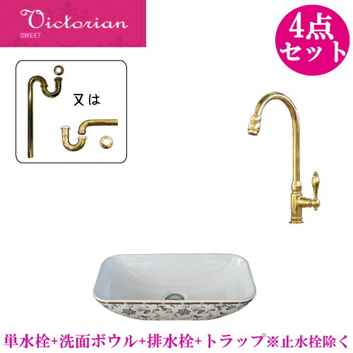 洗面ボウルと水栓セットの解説洗面ボウルや蛇口(水栓)、排水栓、トラップをセットにした3〜4点セット!