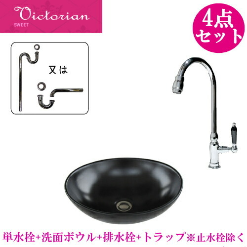 洗面ボウルと水栓セットの解説洗面ボウルや蛇口(水栓)、排水栓、トラップをセットにした3〜4点セット!