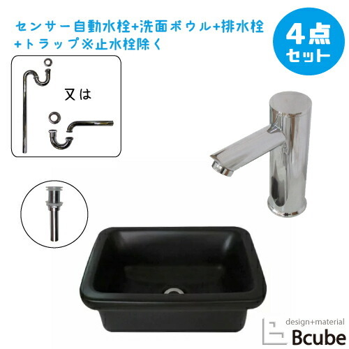 洗面ボウルと水栓セットの解説洗面ボウルや蛇口(水栓)、排水栓、トラップをセットにした3〜4点セット!
