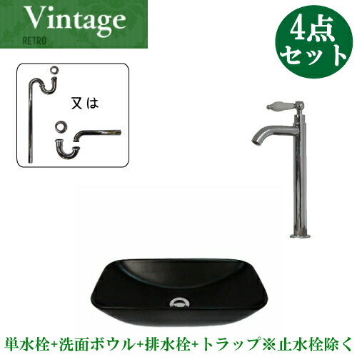 洗面ボウルと水栓セットの解説洗面ボウルや蛇口(水栓)、排水栓、トラップをセットにした3〜4点セット!