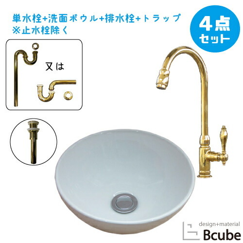 洗面台 コンパクト 洗面ボウル 陶器製 おしゃれ セット 小さい 小さめ 置き型 丸型 蛇口 交換 リフォーム 4点セット 単水栓 オンカウンター W285 B-0405024HJset126