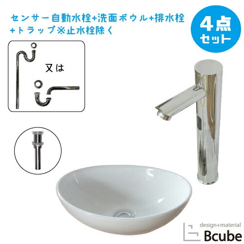 洗面台 おしゃれ 置き型 410 大きい 大きめ センサー自動水栓 タッチレス 陶器 セット 洗面ボウル 交換 リフォーム 4点 単水栓 手洗い器 幅41cm B-0405027HSset257