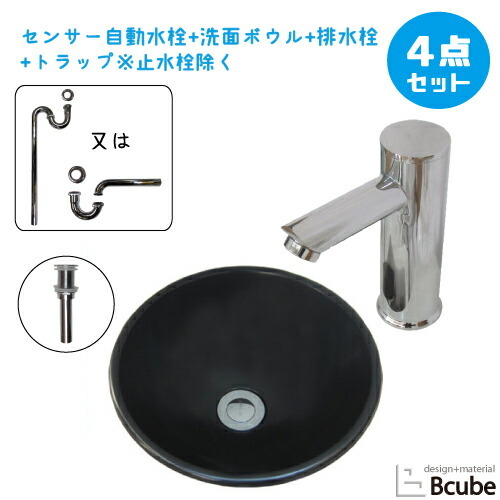 洗面ボウルと水栓セットの解説洗面ボウルや蛇口(水栓)、排水栓、トラップをセットにした3〜4点セット!