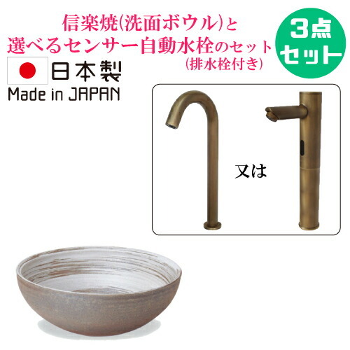 信楽焼(洗面ボウル)と選べるセンサー自動水栓のセット