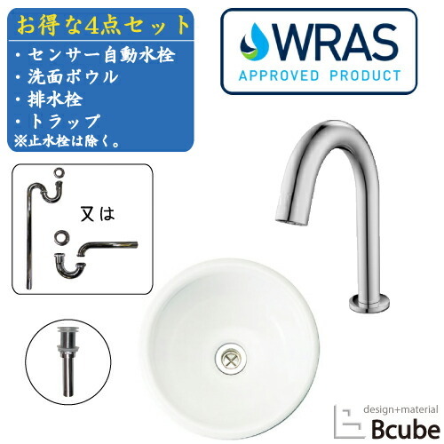 洗面ボウルと水栓セットの解説洗面ボウルや蛇口(水栓)、排水栓、トラップをセットにした3〜4点セット!