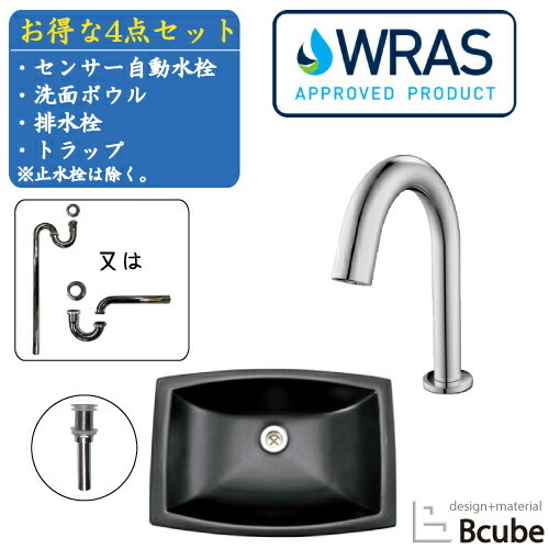 洗面ボウルと水栓セットの解説洗面ボウルや蛇口(水栓)、排水栓、トラップをセットにした3〜4点セット!