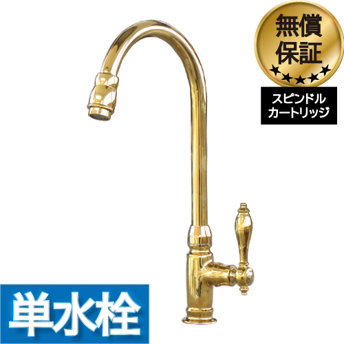洗面 トイレ 蛇口 おしゃれ シングルレバーハンドル 水栓 交換 リフォーム 水栓金具 単水栓 ゴールド (金) 水回り インテリア 奥行22×吐水口高23cm INK-03020121H