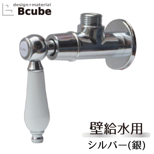 止水栓 壁給水タイプ おしゃれ リフォーム 交換 陶器 レバーハンドル シルバー(銀) INK-0304007HT