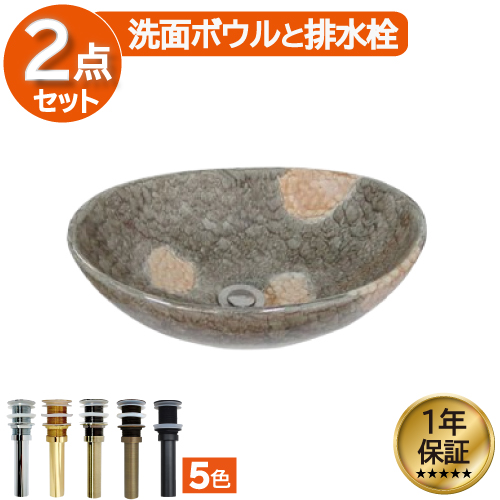 洗面ボウル 陶器 オンカウンター 置き型 ベッセル オーバル シェルパターン ブラウングレー 幅41cm INK-0403165H