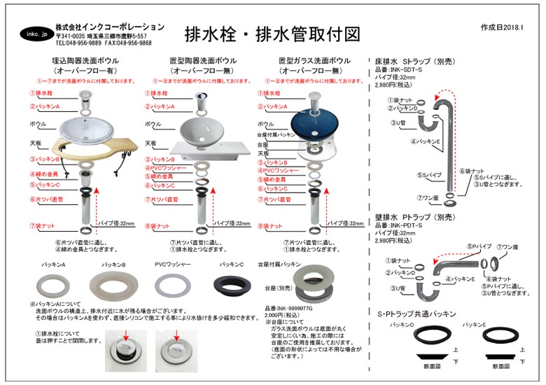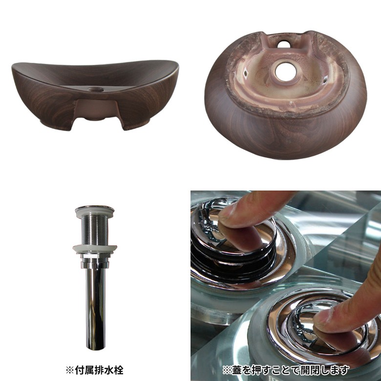 | 〇陶器製品寸法には公差がございます。 〇セット内容は本体1個+排水栓となります。 〇ポップアップ式対応の水栓とは連動しませんので、ご注意下さい。 〇水栓・台は別途でのご購入となります。 〇付属のプッシュアップ式排水栓のパイプ径はΦ32となりますので、排水管のSトラップ(床排水用)及びPトラップ(壁排水用)はΦ32と適合致します。 〇プッシュアップ式排水栓は、ゴールド(金)、アンティークゴールド(古金)、ブロンズ(古銅)、ブラック(黒)色にご変更頂けます。 ※オーバーフロー付きの洗面ボウルは、オーバーフローキャップも同色にさせて頂きます。 〇取付工事はお近くの工務店様にご相談してください。 |