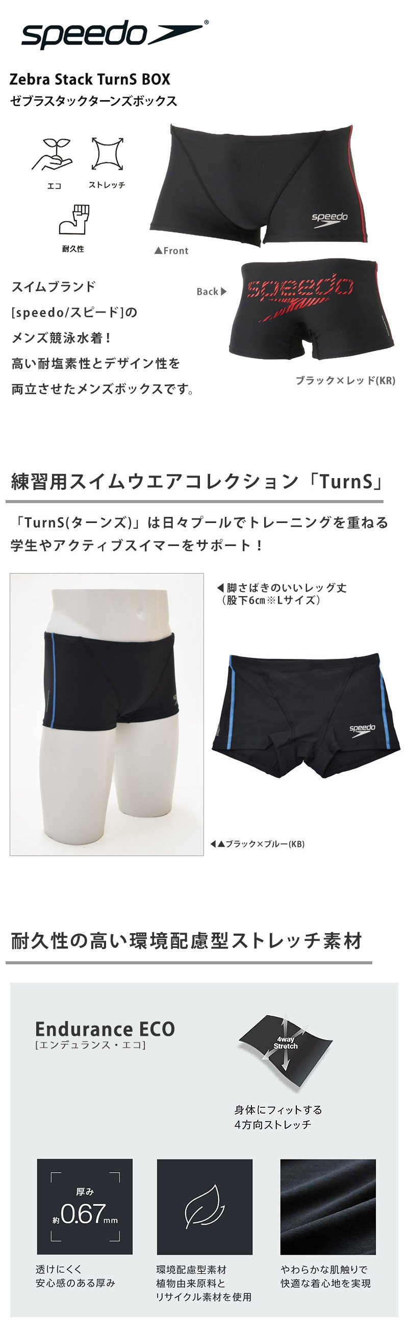透けにくい厚みと柔らかな風合いを実現した、ペットボトルを粉砕して再生したリサイクルポリエステルと植物性由来原料のSOLOTEXを使用した環境配慮型素材「ENDURANCE ECO(エンデュランス・エコ)」を採用したメンズボックスです。