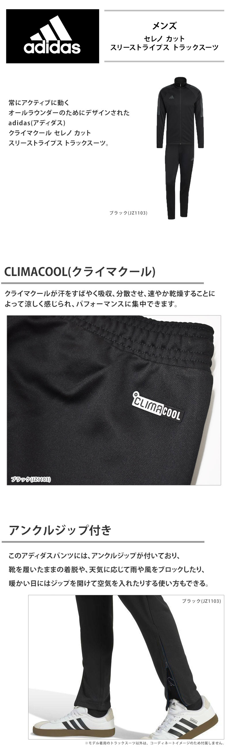 クライマクール セレノ カット スリーストライプス トラックスーツ。