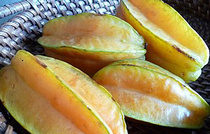 室温(20℃程度)で保存すると追熟が進みオレンジ色を帯び、星形の(角)の部分が茶色くなってくると、酸味が弱くなり淡くやさしい甘味を楽しめますので、冷やして生食や、デザートの素材として向いています。