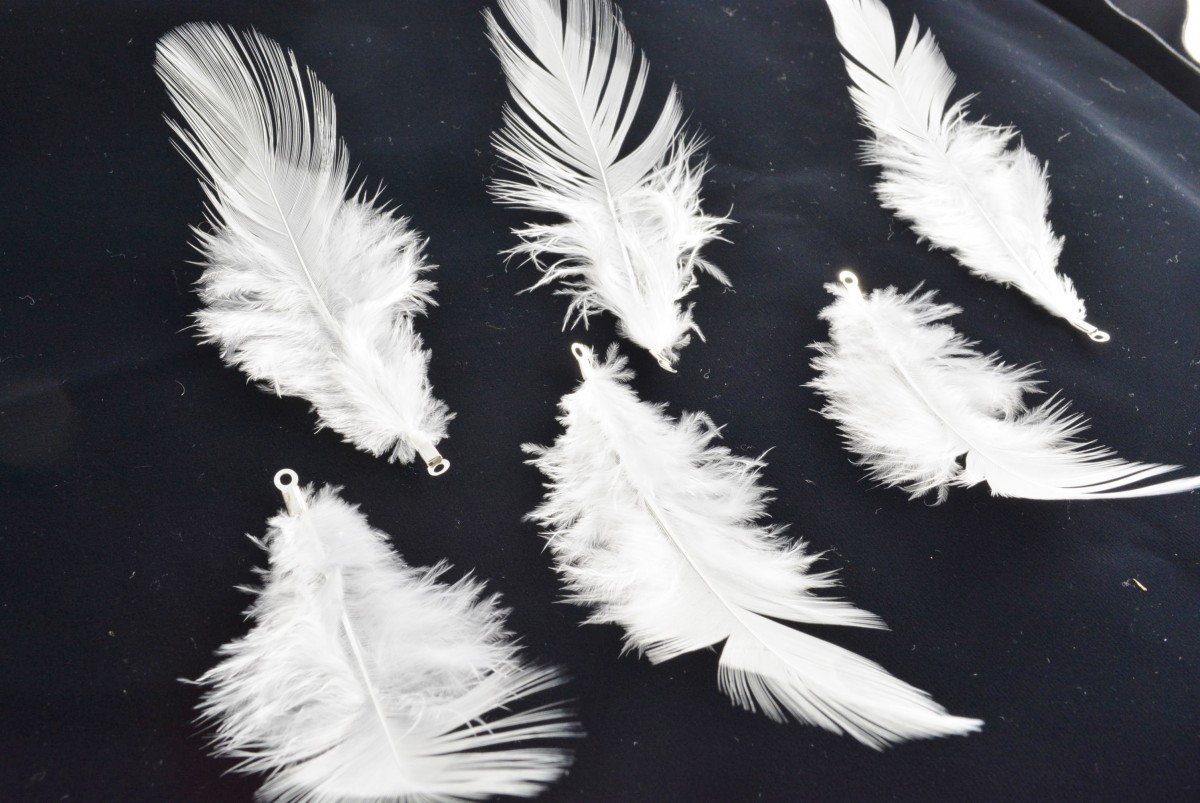 羽 フェザー ホワイト 銀 チャーム カン付 7枚セット 9cm ビーズクラブ