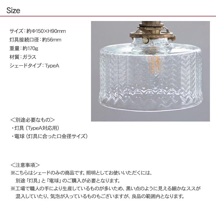 注意事項:※こちらはシェードのみの商品です。照明としてお使いいただくには、別途「灯具」と「電球」のご購入が必要となります。