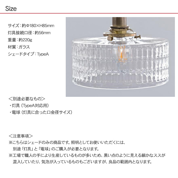 注意事項:※こちらはシェードのみの商品です。照明としてお使いいただくには、別途「灯具」と「電球」のご購入が必要となります。