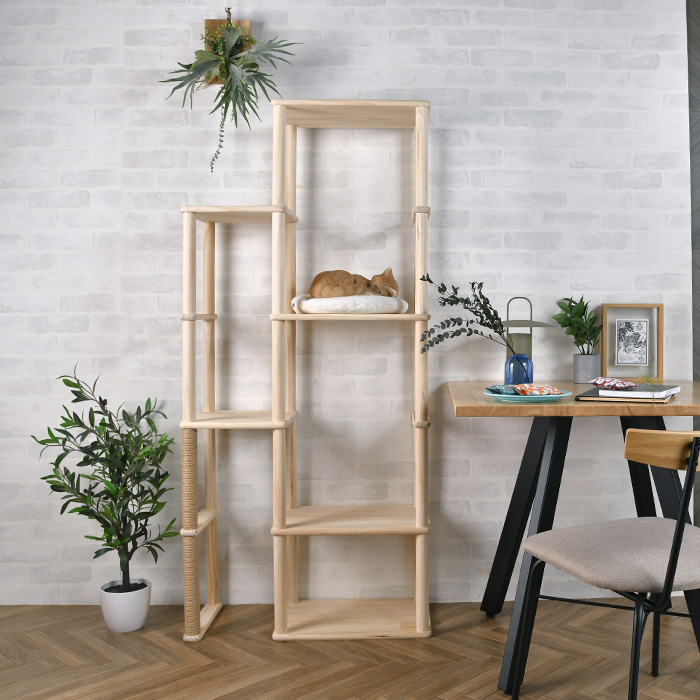 棚板や別サイズのポールと組み合わせて、お好みのサイズでキャットタワーや収納棚が完成。