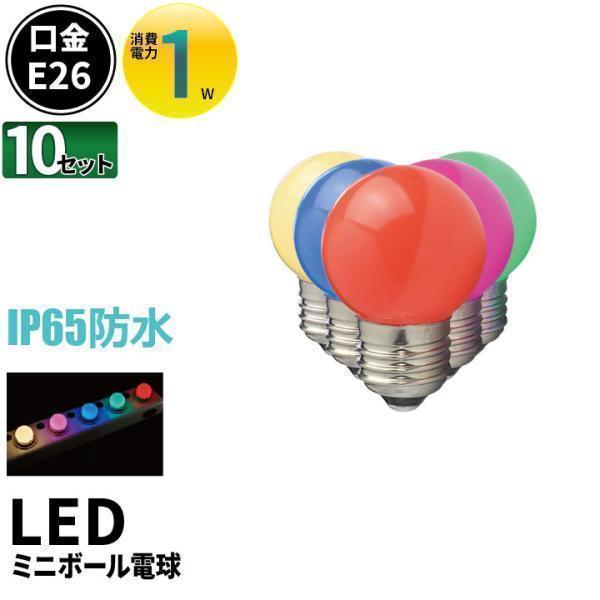 10個セット LED 電球 E26 ミニボールタイプ 1W LED装飾電球 IP65 カラー led 電球 LED 電球色 レッド 赤色 緑色 青色 ピンク