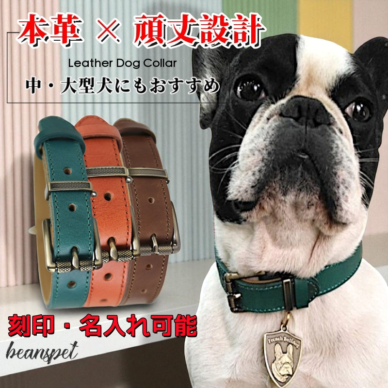 名入れ無料 犬用 本革首輪 厚手レザー 首回り調整可能 ベルトタイプ 小型犬 中型犬 大型犬対応 迷子札リング付き 牛革製 おしゃれカラー 5サイズ展開 丈夫