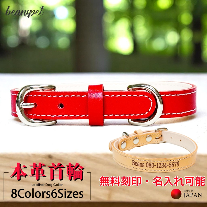 名入れ無料 本革首輪 日本製 犬用カラー ベルトタイプ 小型犬 中型犬 猫用対応 おしゃれ カラフル レザー XS〜Lサイズ対応 軽量 丈夫 高品質