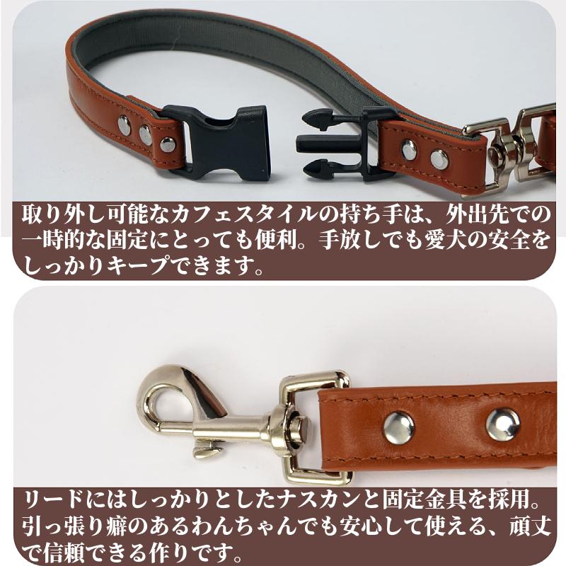 本革ペットリード 犬リード 回転金具 持ち手取り外し可能 カフェスタイル 5色展開 小型犬 中型犬 大型犬用