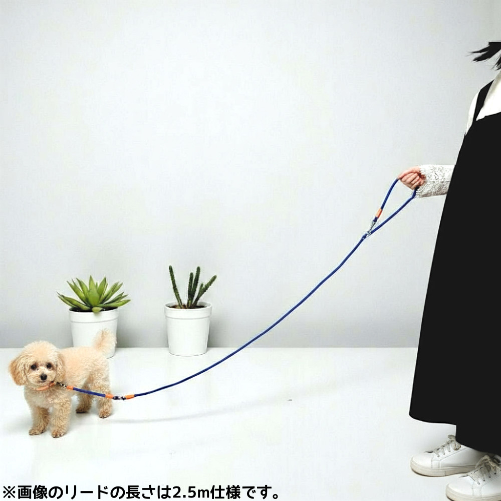 2.5mをショルダースタイルで使うと、通常の手持ちスタイルの約1.3mリードを使っている感覚に近く、街中での扱いやすさと安心感があります。