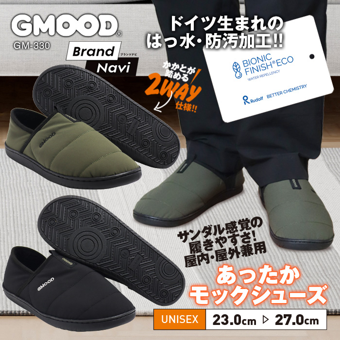 ユニセックス はっ水・防汚加工 あったか 2WAY モックシューズ スオミ by ジームード / Thermo mock shoes by GMOOD GM-330