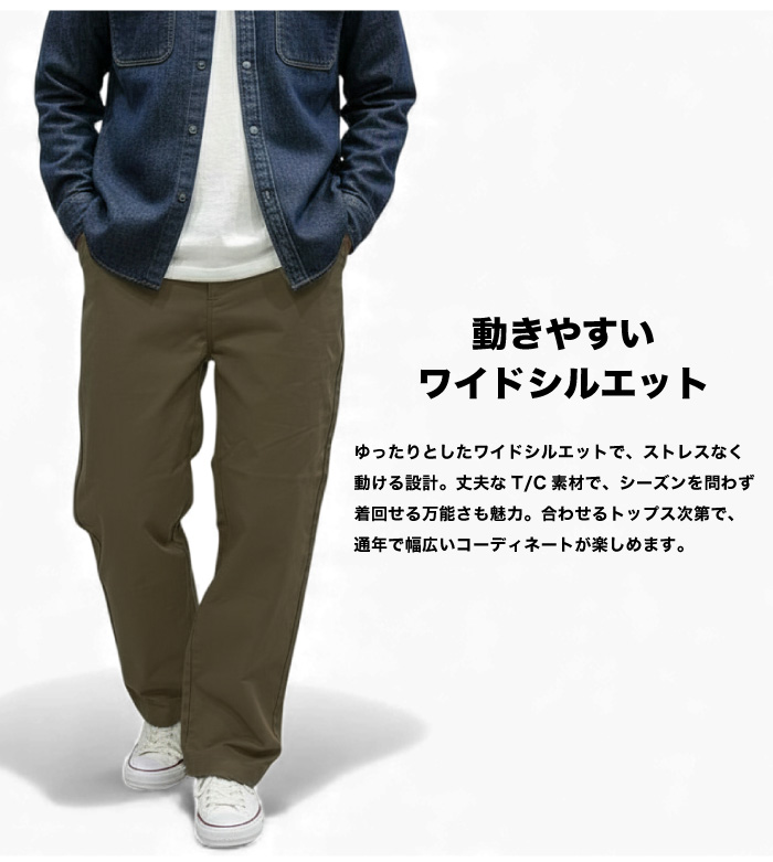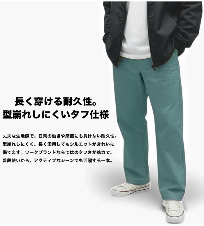 | 【コメント】 ワークウェアブランドならではのタフさと、毎日気軽に履ける快適さを兼ね備えた定番ワイドパンツ! 丈夫でありながら、ごわつき感のない質感でストレスなく穿けます。 ワイドシルエットならではのゆとりがありながら、動きやすさも確保。 トップスのテイストを選ばない万能さが特徴で、幅広いコーディネートに対応。 年代問わず長く愛用できるパンツに仕上がっています。 ワークブランドの確かな品質と、普段使いしやすいシンプルさを兼ね備え、 ワードローブに一つあると重宝する万能パンツです。 |