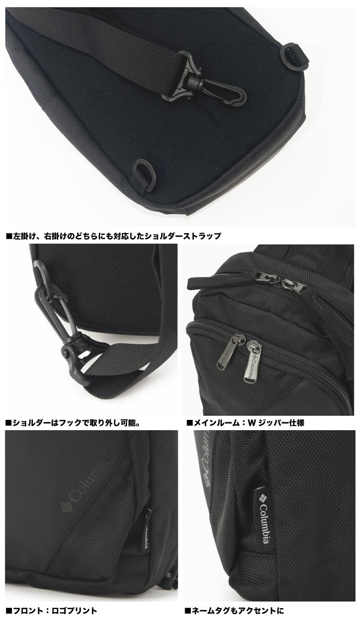 | 【仕様】 ・コロンビア独自のはっ水(撥水)機能「オムニシールド」 ・メインコンパートメント内部にオープンポケット×1 ・外側:ファスナーポケット×1 ・左掛け、右掛けのどちらにも対応したショルダーストラップ ・重量:約290gg | |||||||||||||||||