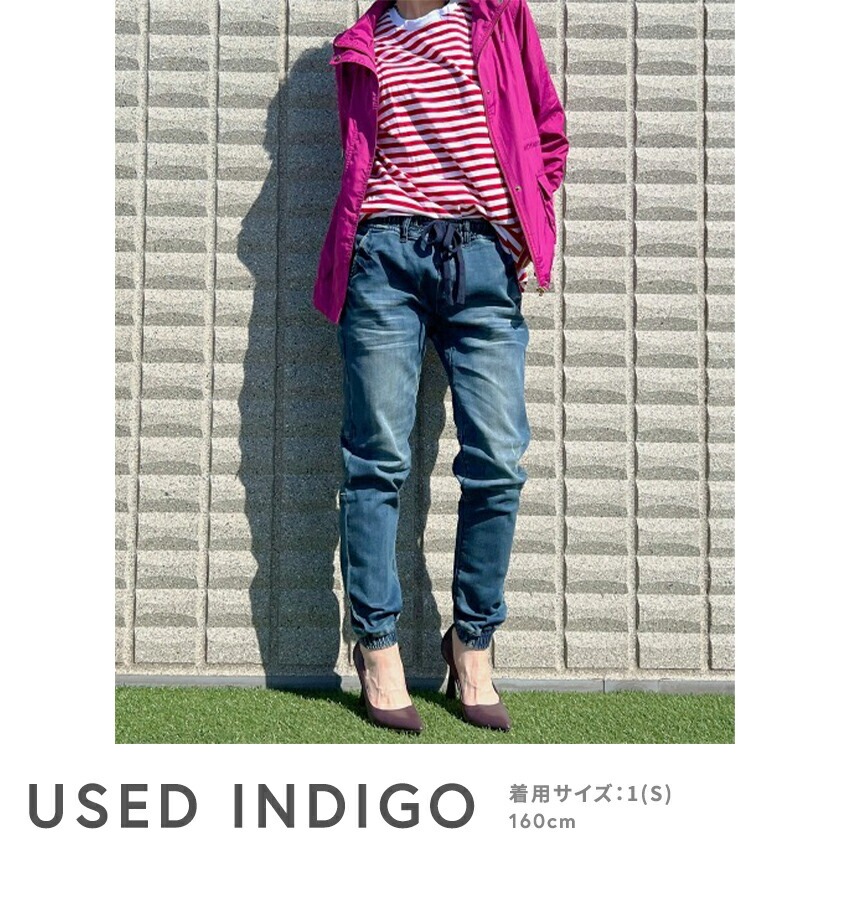 シンプルですが、膝裏が切替になっていたりと立体感のある雰囲気の大人っぽいデニムジョガーパンツに仕上げました!