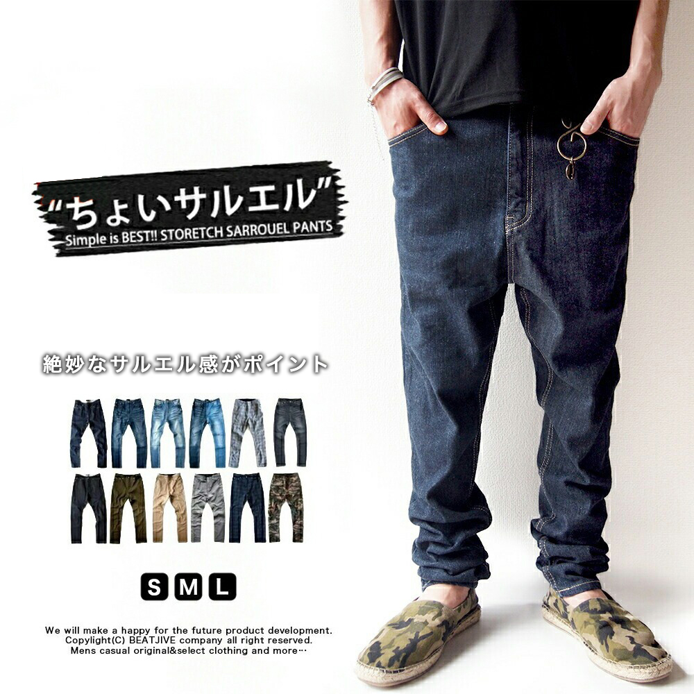 細身のシルエット、やりすぎない股上で程よくサルエル感を演出し、シルエットもキレイに見えるように作っています。