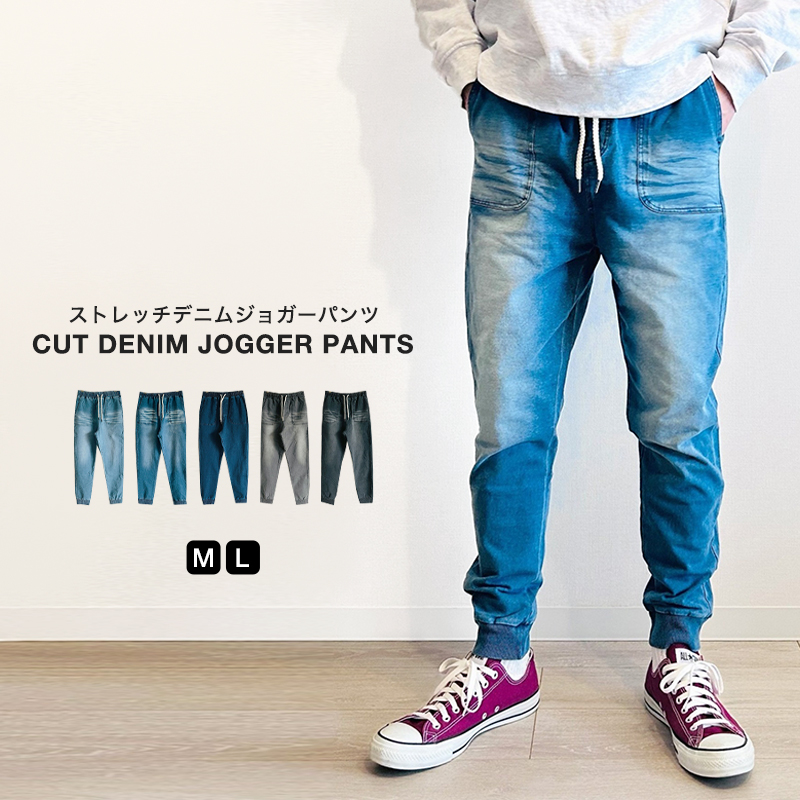 ジョガーパンツ メンズ カットデニム スウェットパンツ ストレッチ ウエストゴム スキニー テーパード スリム 裏毛 キレイめ ゆったり ゴルフ 春 夏 秋 冬