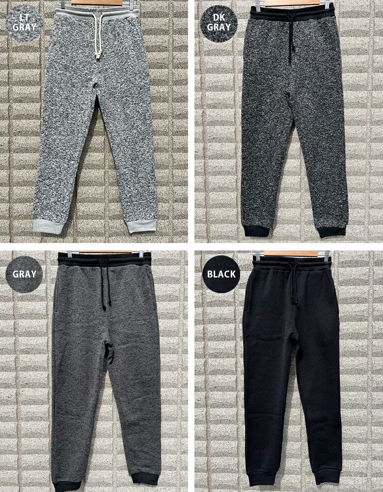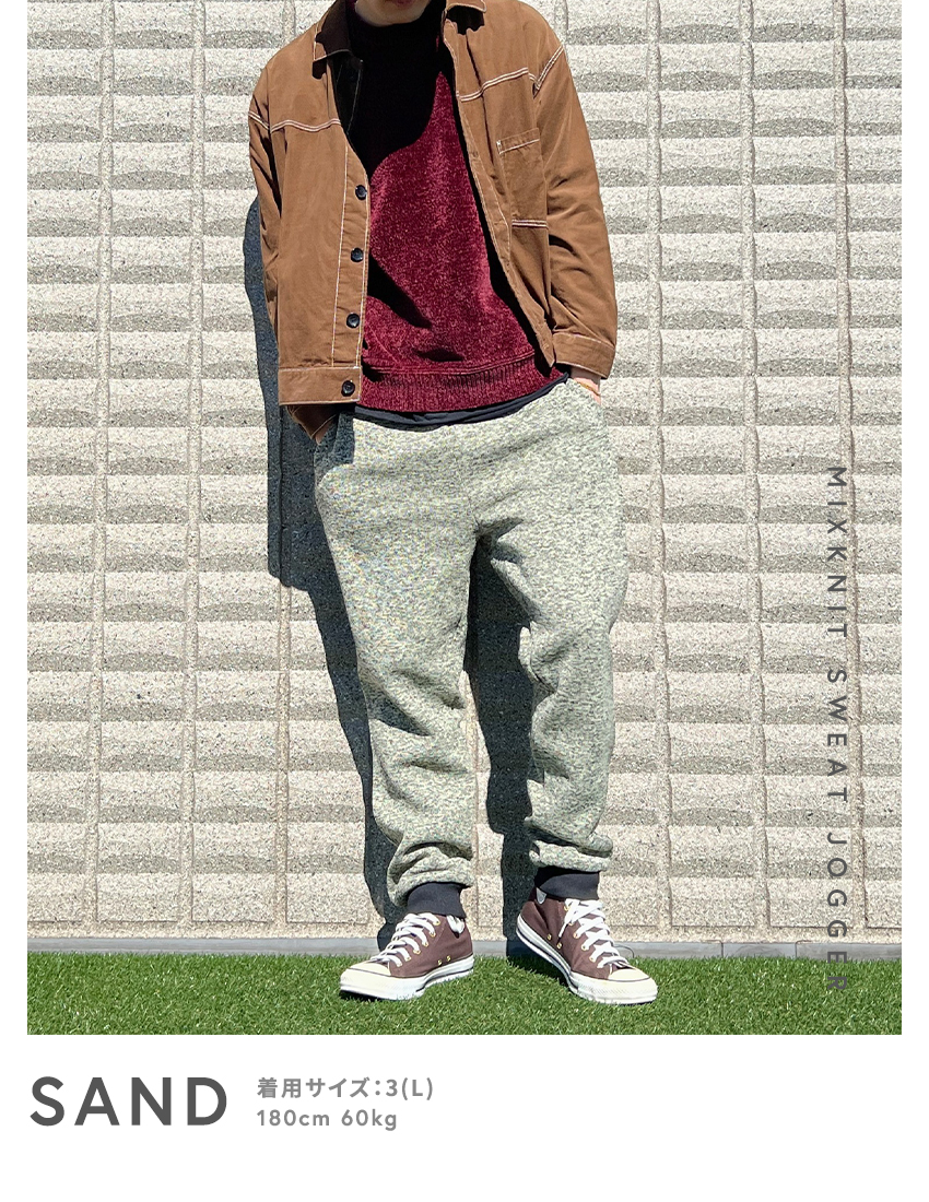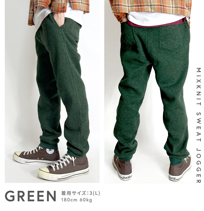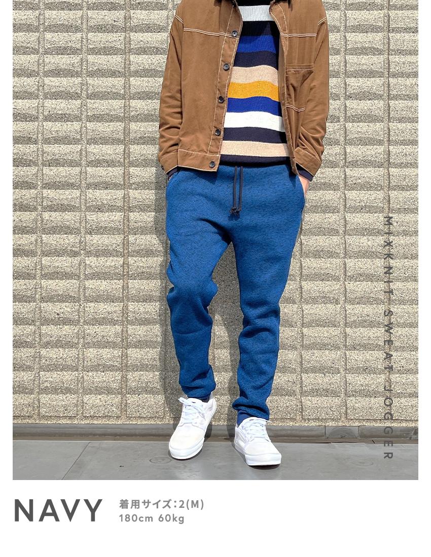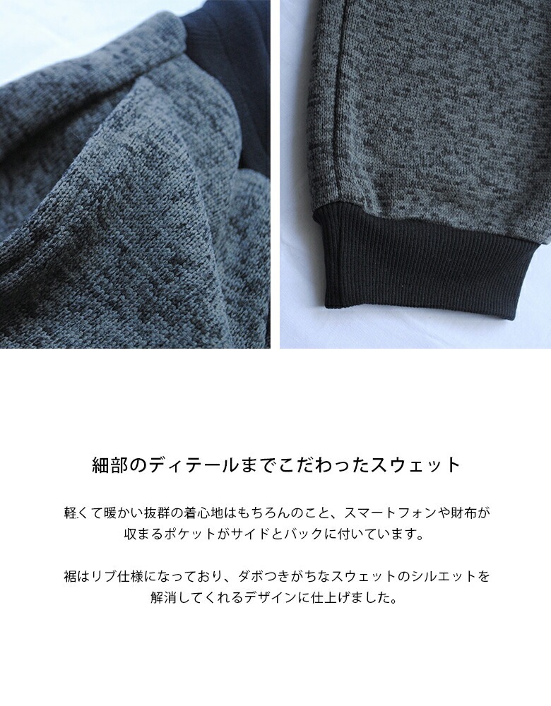 裏起毛で肌触りが良いミックスニット素材のスウェットジョガーパンツです。