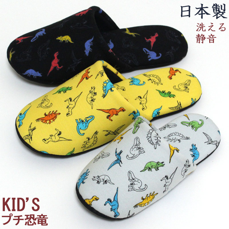 スリッパ 子供 キッズ プチ恐竜 3サイズ展開 洗える 男の子 女の子 静音 かわいい 日本製