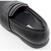 一見、普通のローファーに見えますが、甲部分がマジックテープ留めになっています。ベロが大きく開くから足が入れやすく、お子様の足の幅にフィットするよう調節して履く事も出来ます。