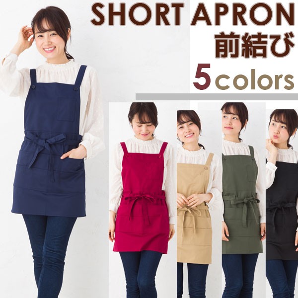 定番エプロン 前結びショート丈シンプルデザインで使いやすい