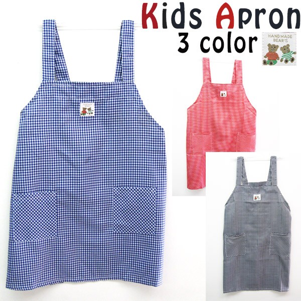 子供用エプロン ギンガムチェック H型 エプロン かわいい 男の子 女の子 マジックテープ 赤・紺・黒 110・130・140 調理実習 料理 ギフト プレゼントメール便可