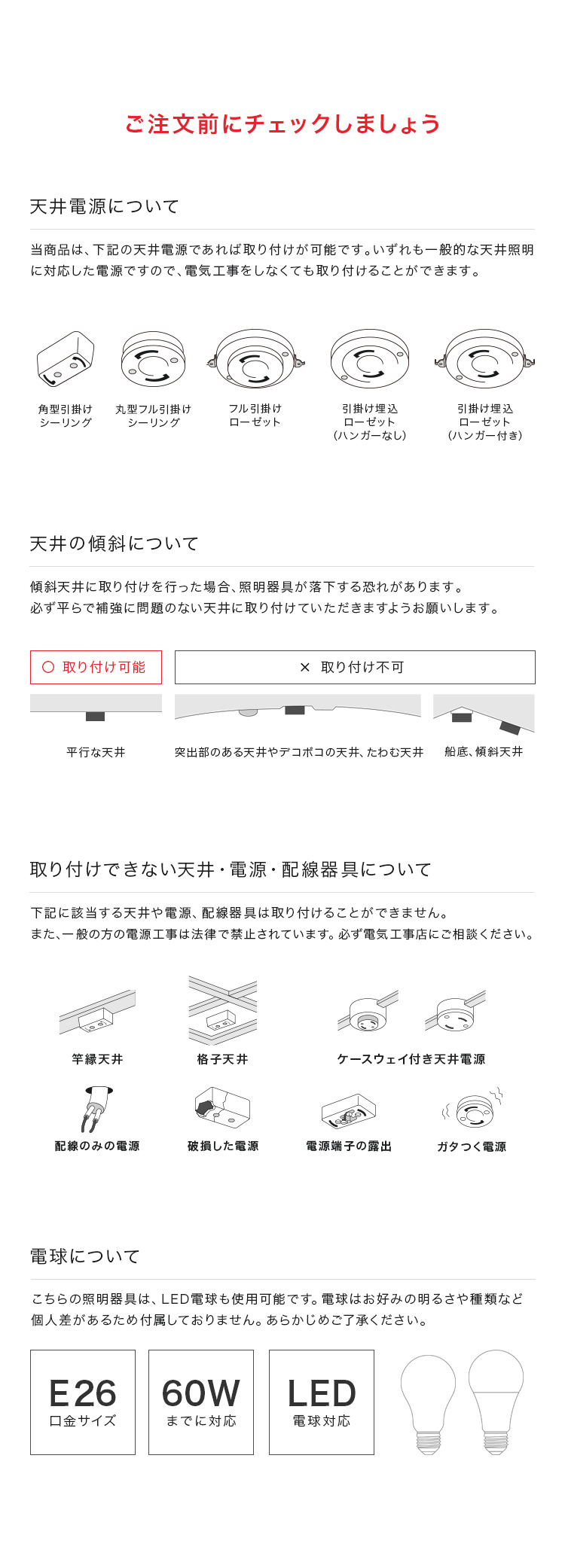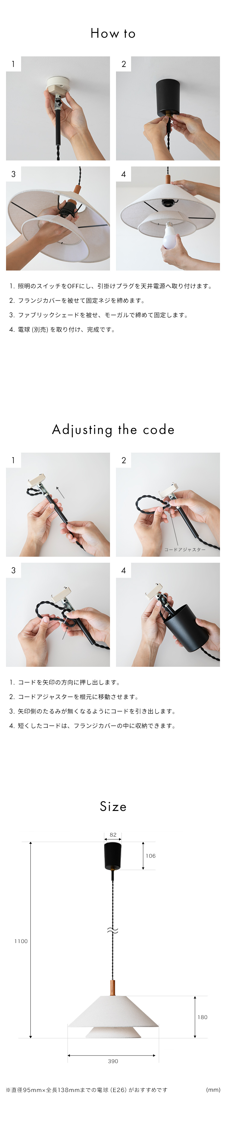 推奨電球サイズ:直径95×高さ138mmまでの電球(E26)がおすすめ