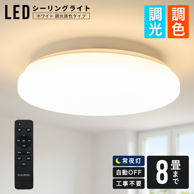 【どんな空間にも馴染む LEDシーリングライト8畳用 ホワイト 調光・調色 】 照明器具 照明 電気 天井照明 直付け 間接照明 LED リモコン付 リビング ダイニング