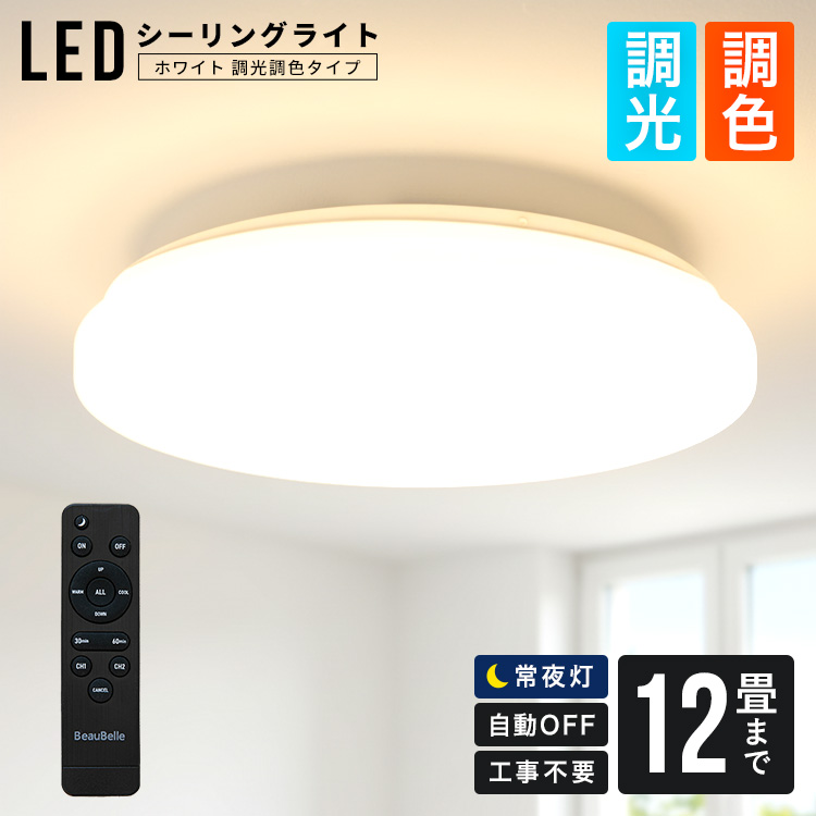 【どんな空間にも馴染む LEDシーリングライト12畳用 ホワイト 調光・調色 】照明器具 照明 電気 天井照明 直付け 間接照明 LED リモコン付 10畳 8畳 リビング