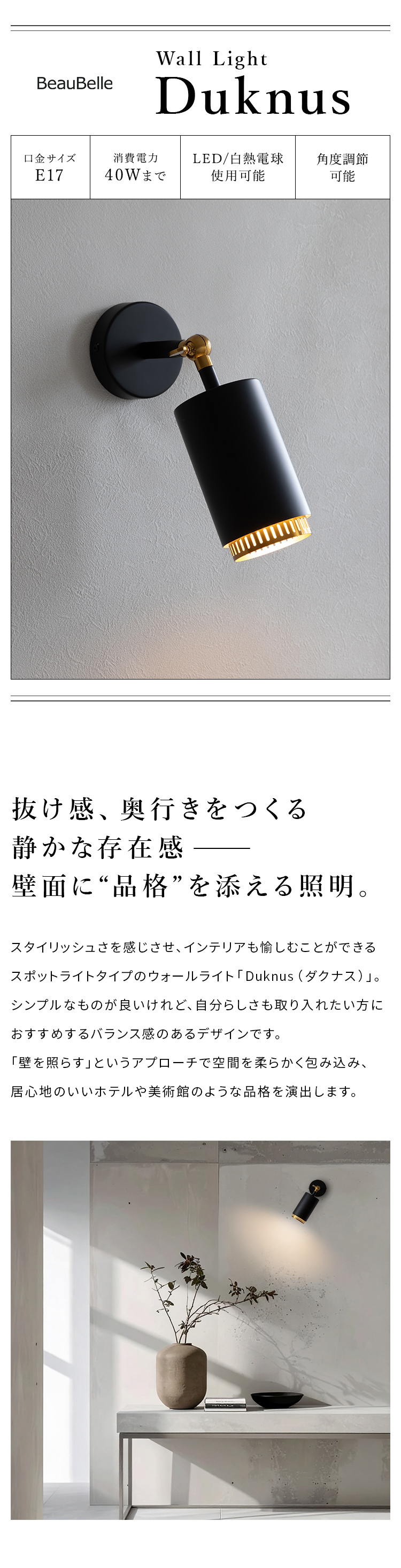 スタイリッシュさを感じさせ、インテリアも愉しむことができるスポットライトタイプのウォールライト「Duknus(ダクナス)」。