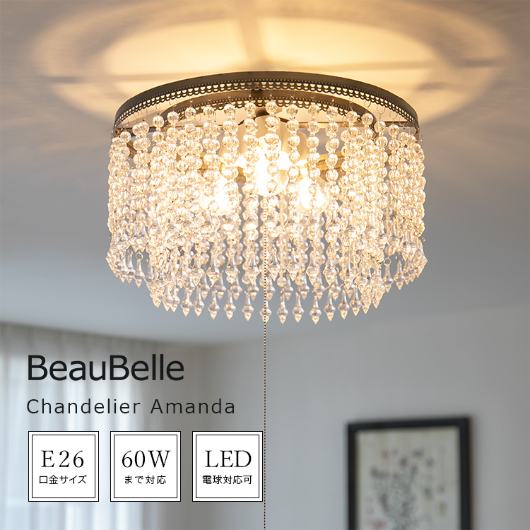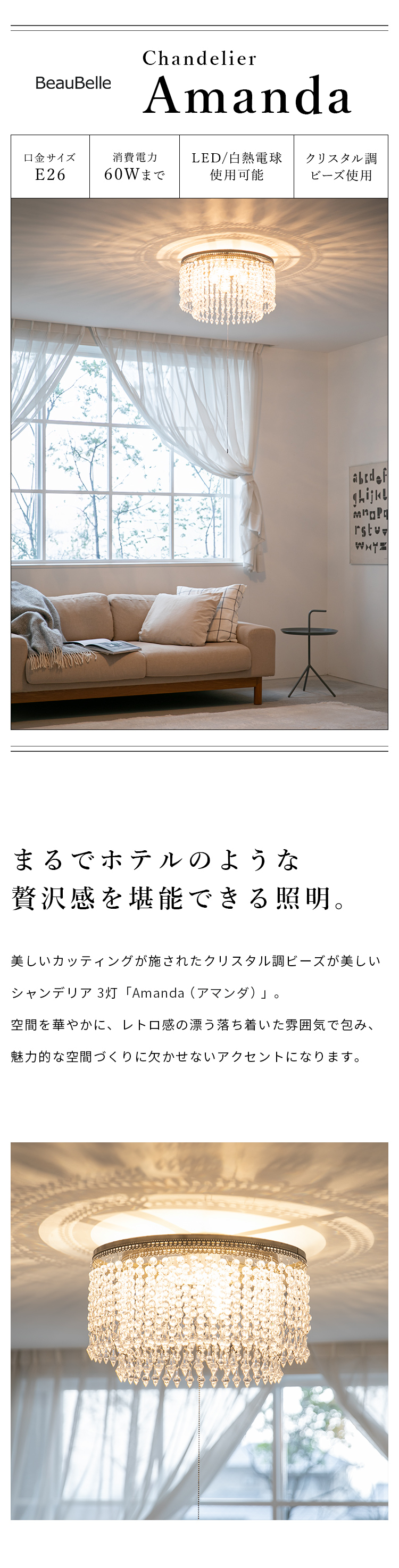 シーリングライト シャンデリア 3灯 led 対応 おしゃれ 照明 クリア 工事不要 かわいい リビング ダイニング 子供部屋 照明器具 天井照明 アマンダ