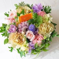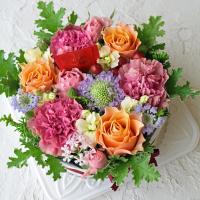 *お届けするアレンジメントの色合いは 【 カラフル 】 です。色々なお花の組み合わせがございます。写真とは異なる花材を使用する場合もございます。その点、ご理解の上、ご注文下さい。