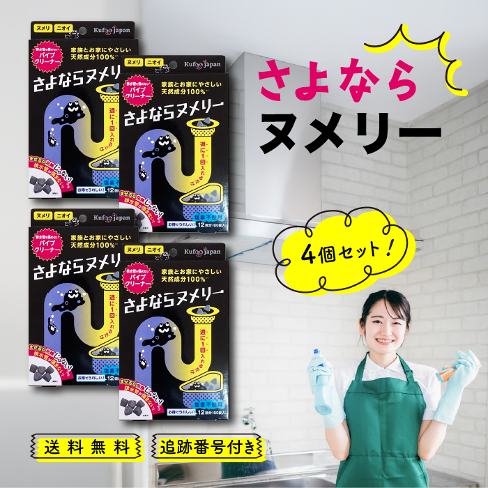 さよならヌメリー 12回分 60錠入 4個セット パイプクリーナー 排水管洗浄 掃除 排水口 非塩素系ヌメリ取り剤 排水パイプ洗浄剤 排水溝