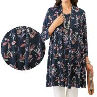 トッパー風 花柄チュニック トップス チュニック 八分袖 レディース 婦人服 ミセス シニア 女性 花柄 8分袖 トッパーコート風 ネイビー 紺色 ボタニカル柄 上品 シニアファッション 40代 50代 60代 70代 80代 母の日 お母さん 秋冬